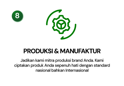 Kami bukan hanya sekedar produksi produk Anda, namun membantu mulai dari konsep & desain produk, memilih bahan baku berkualitas, packaging, legalitas produk kosmetik Anda (BPOM), bahkan didukung oleh mesin teknologi mutakhir & modern juga tenaga R&D profesional yang ahli serta andal, kami memiliki komitmen untuk menjadi mitra terbaik brand Anda juga membesarkan bisnis para entrepreneur dengan lebih mudah.
