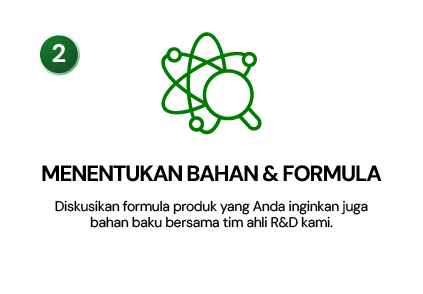 Anda dapat menghubungi Divisi Marketing kami untuk konsultasi mengenai konsep produk, dan request Sampel Produk Sesuai Formula yang Anda inginkan.